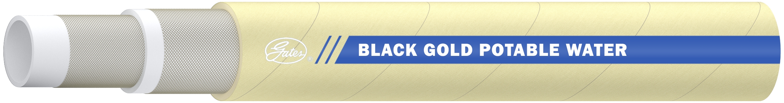 RECOMMENDED FOR: Transfer of potable water, non–potable water or liquids not containing oils or chemicals and applications which require a lightweight, flexible hose with a tight bend radius and a high rated working pressure in long continuous lengths.